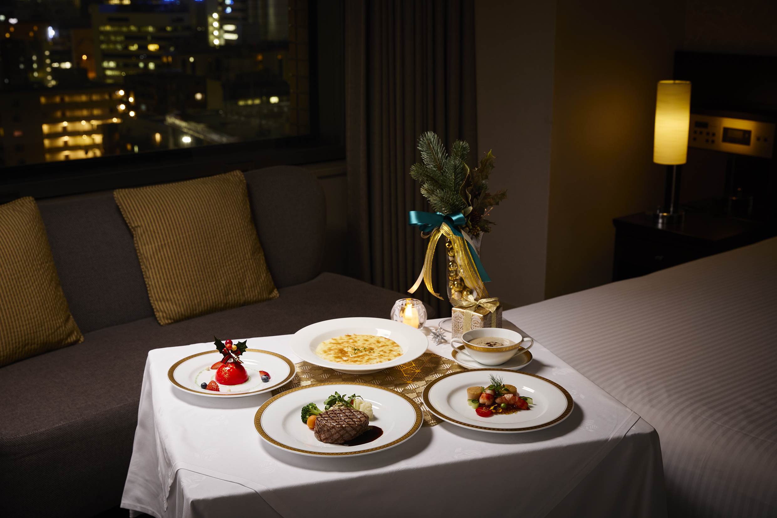 ゆったりとしたお部屋、華やかなディナー、ケーキや花束のご用意も可能です。
