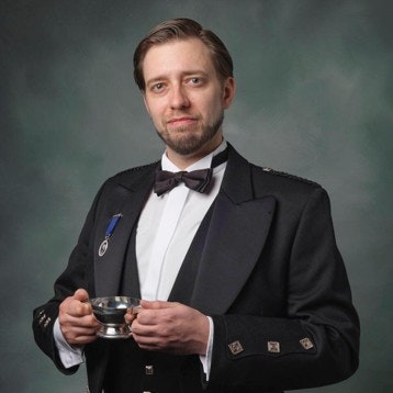 スコットランドで最も多くの蒸留所を所有するディアジオ社、およびグレンモーレンジィ社にて、約15年間にわたり醸造、蒸留、熟成、比較テイスティング、樽の製造など、シングルモルトの製法の全てを習得したウイスキー製法のスペシャリストであり、スコッチウイスキー業界への特別な貢献が認められた人物のみで構成されるザ・キーパーズ・オブ・ザ・クエイヒの一員。