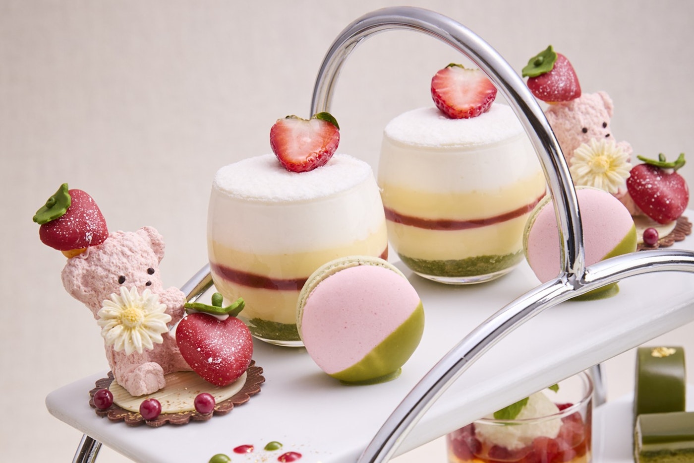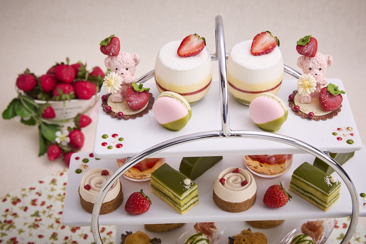 いちごと人気の抹茶を組み合せた、見た目も可愛らしいアフタヌーンティーが登場。濃厚な抹茶のテリーヌはじめ、ティラミスやマカロン、タルトなど甘酸っぱいいちごと抹茶の絶妙なハーモニーをお楽しみいただけるスイーツとセイボリーをご用意。春の訪れを感じながら、優雅なティータイムをお過ごしください。