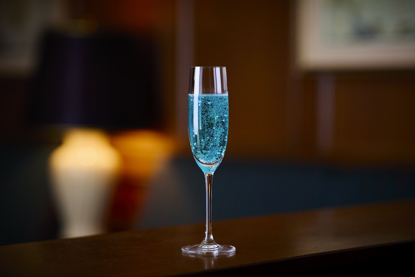 輝く宝石のような青が美しい、宇宙から見た地球とロビーシャンデリアの天の川をイメージしたホテルオリジナルカクテル