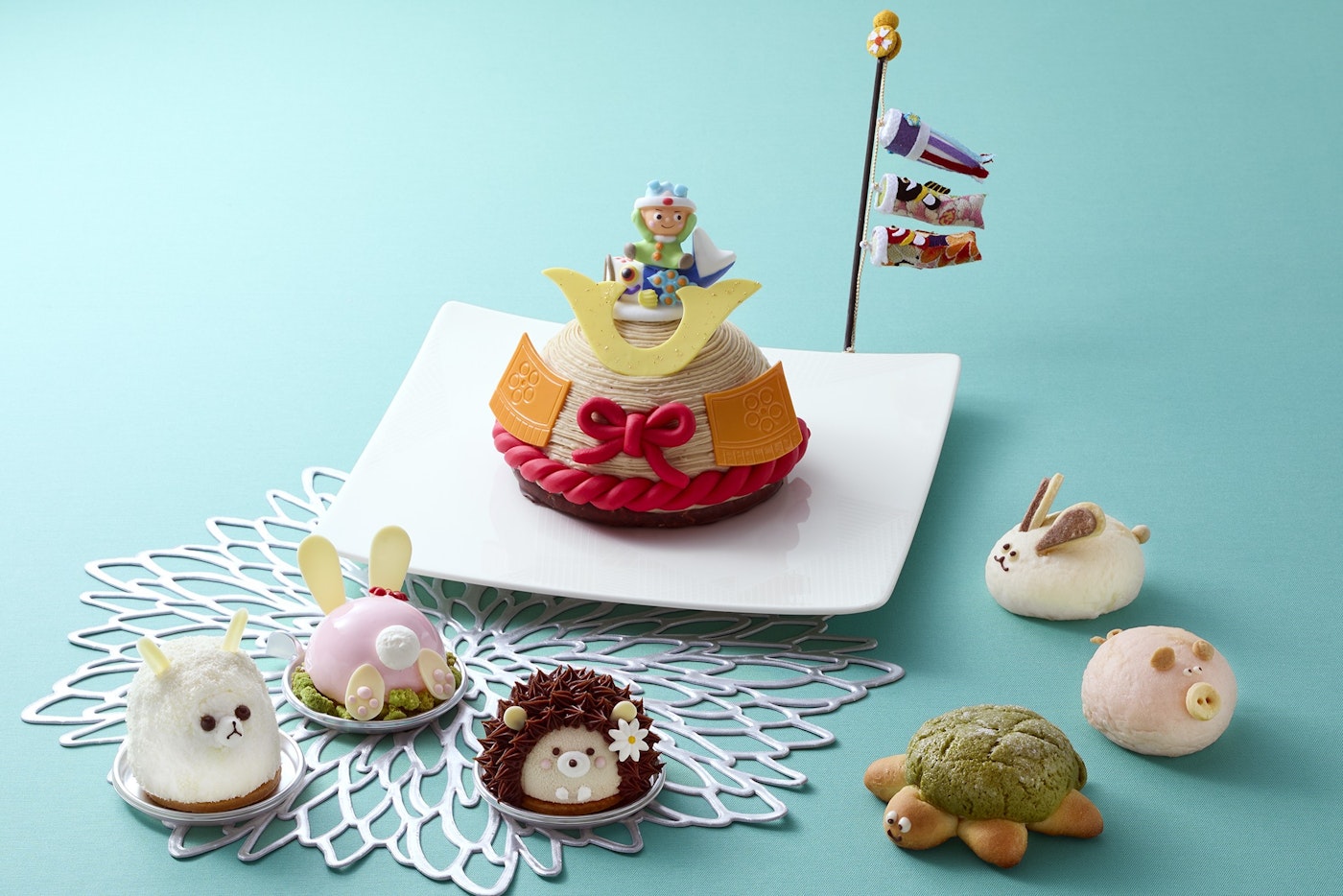 多彩な表情が可愛らしいアニマルスイーツとパンが登場。後ろ姿が今にも飛び跳ねそうなウサギのケーキや、まんまるな形が可愛らしいぶたぱんなど、見た目も味も異なるバラエティ豊かなスイーツとパンを「こどもの日」の楽しいひとときにいかがでしょうか。毎年人気の兜のモンブランもおすすめです。