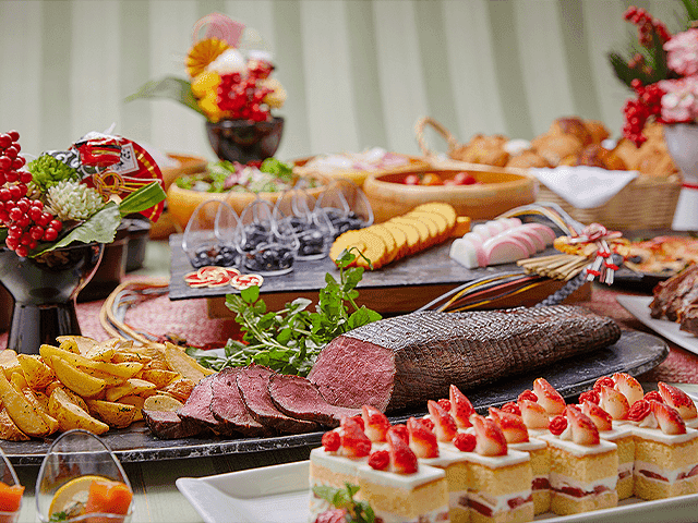 付帯内容:年越しそば、おせち料理、初釜、縁日フェア利用券、干支の置物( 1室1セット)、大福茶(1室1つ)